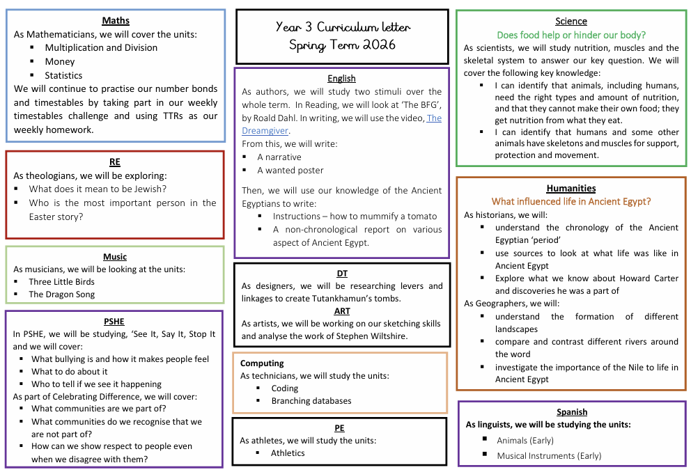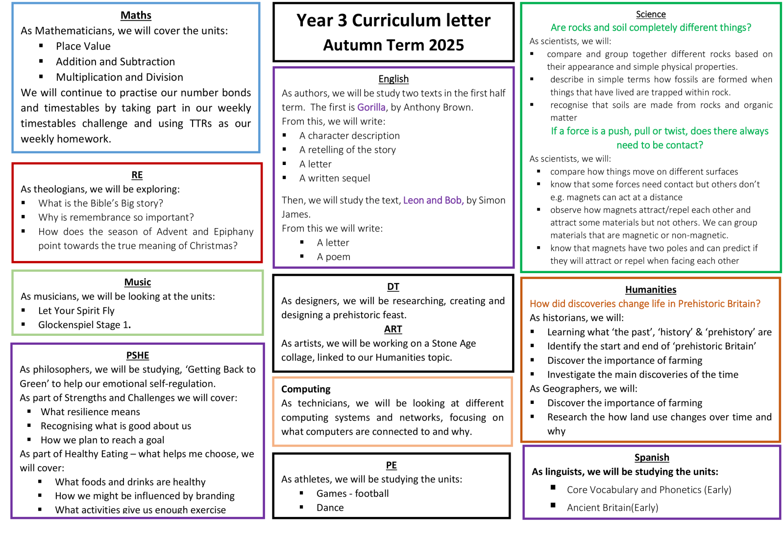 Hello and welcome to the Year 3 page! This is where you will find all the information you need to know about what we will be doing in Year 3 this term. There is so much to look forward to this year!